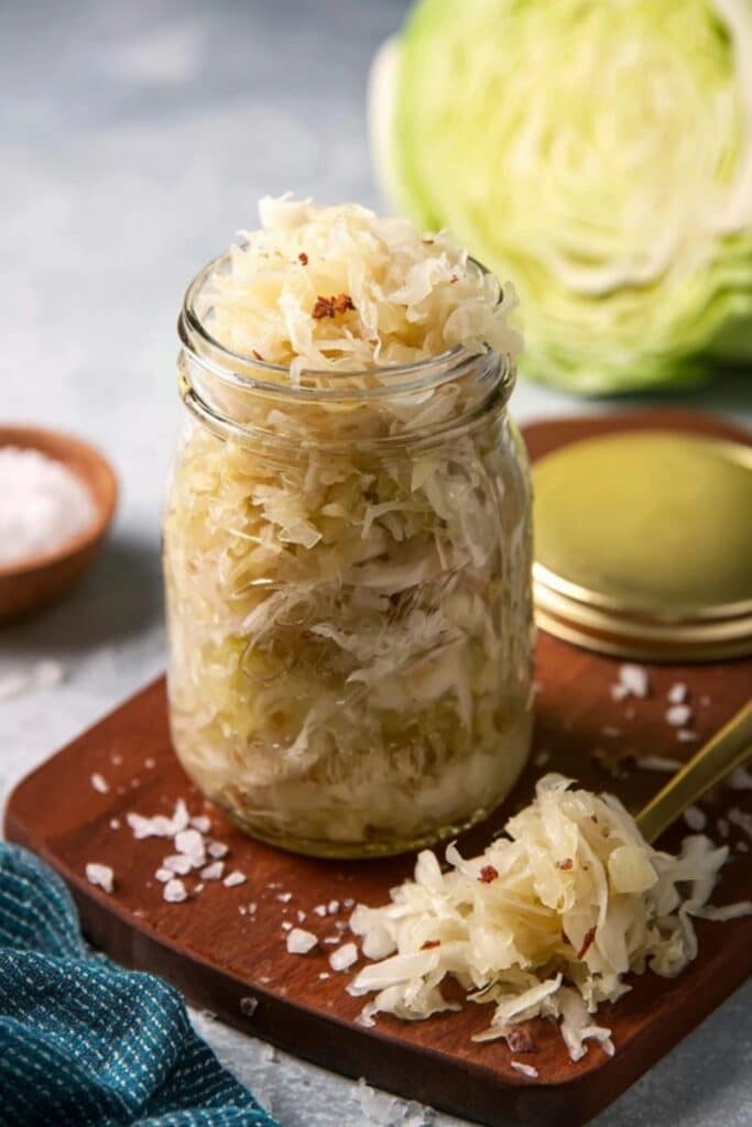 Use a non-iodized salt like sea salt, pickling salt, or kosher salt that doesn’t contain anti-caking agents. Iodine and additives can interfere with fermentation and affect texture, so plain, clean salt helps your 5-day homemade sauerkraut stay crisp and consistent.