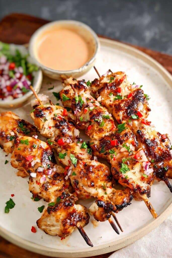 Want to impress your guests? Layer the skewers over a rustic wooden platter, sprinkle with sesame seeds and fresh scallions, and place lime wedges on the side. It’s all about color, balance, and just a little extra style.