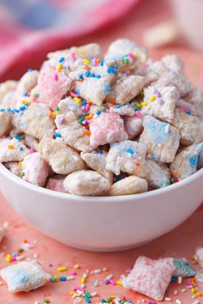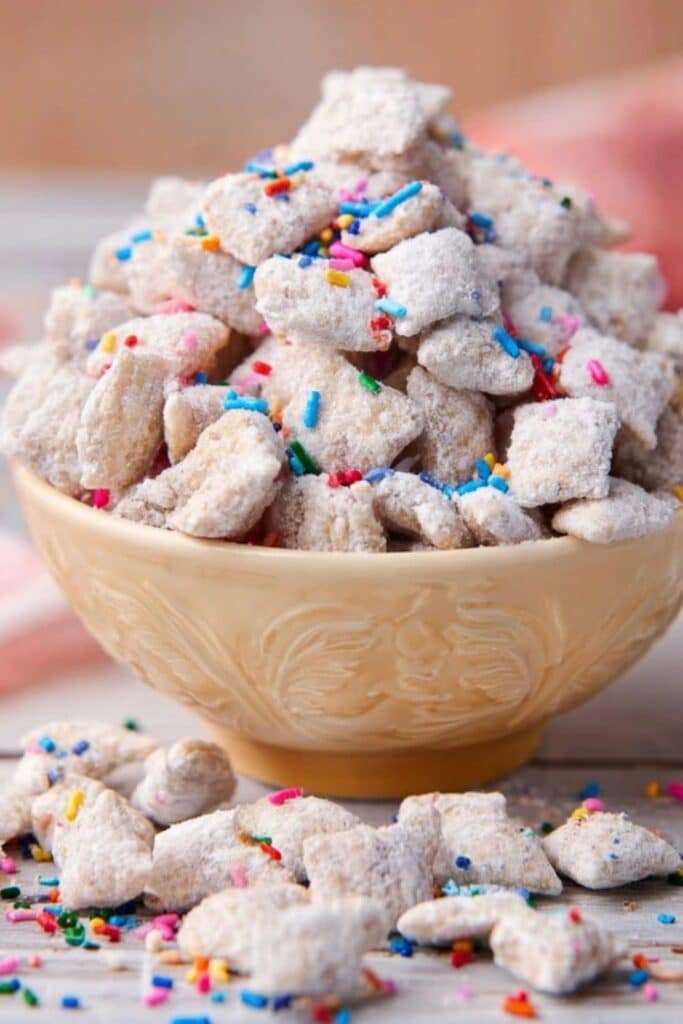 Just like that, your Birthday Cake Puppy Chow Recipe is ready to serve!