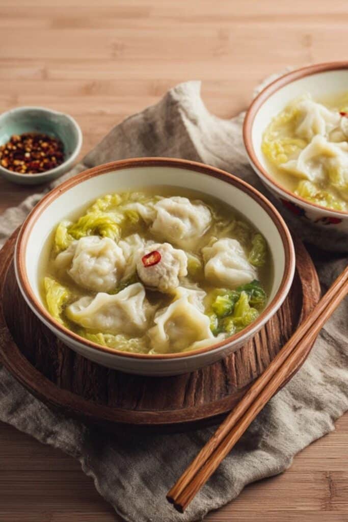 This approach mirrors the veggie-heavy style of some pork dumpling soup and dumpling noodle soup recipes that use lots of greens for color and texture.