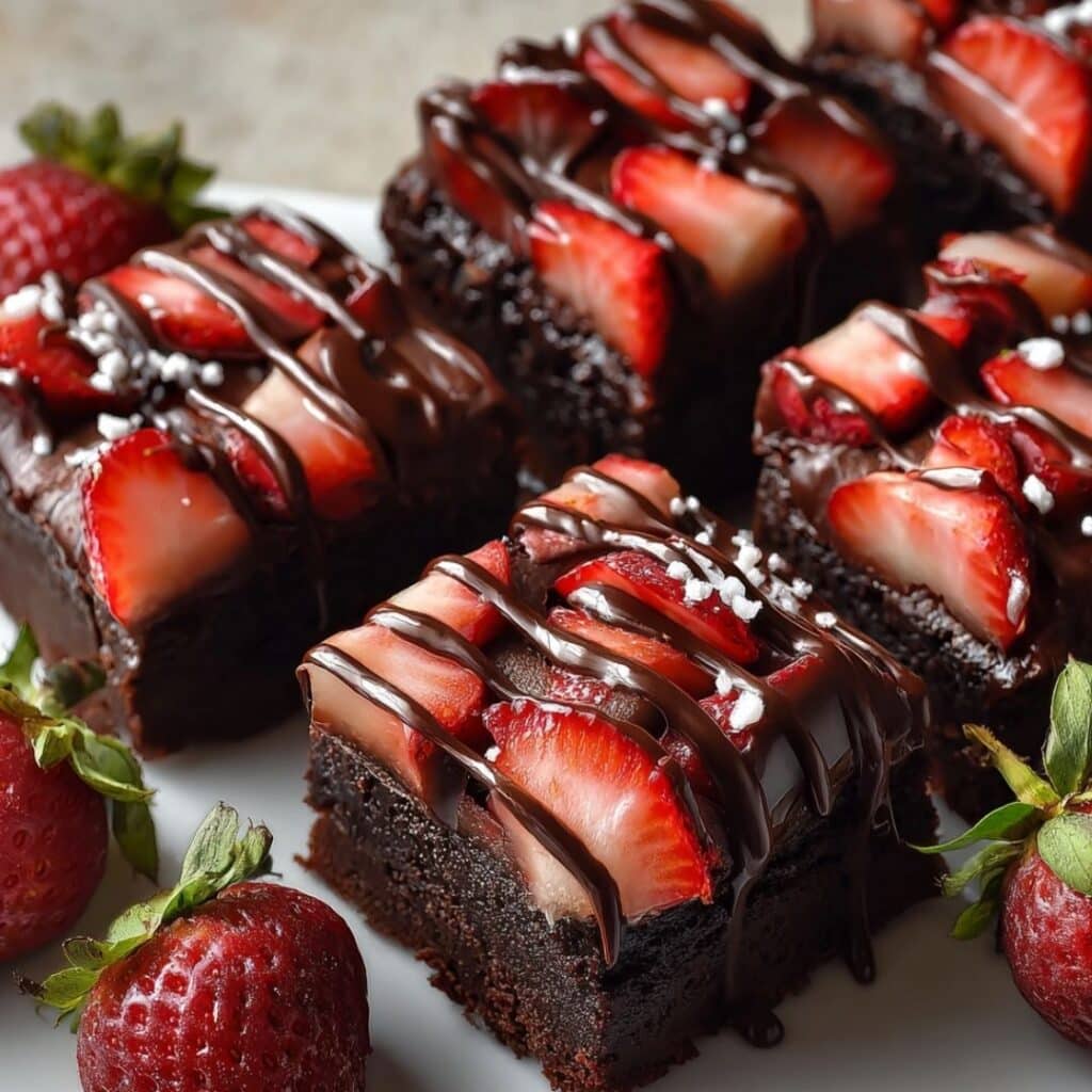 These indulgent Chocolate Covered Strawberry Brownies combine fudgy chocolate with a fresh strawberry coating. Perfect for dessert lovers craving both rich and fruity flavors.