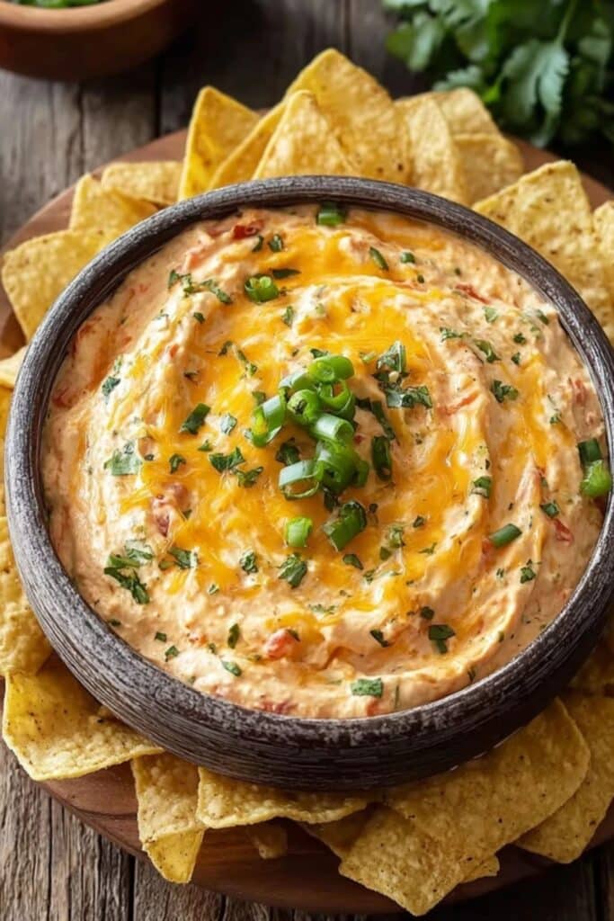 If you’re planning a party, think of Cream Cheese Salsa Dip as your anchor dish. Set it at the center of the table, surrounded by bowls of chips, crackers, and veggies. For a game-day gathering, pair it with nachos, sliders, and wings to create the ultimate finger food feast. You can also serve it warm, bubbling in a baking dish, alongside cold appetizers for contrast. I once served it with grilled chicken skewers and baked potatoes, and it worked beautifully as both a dip and a topping.