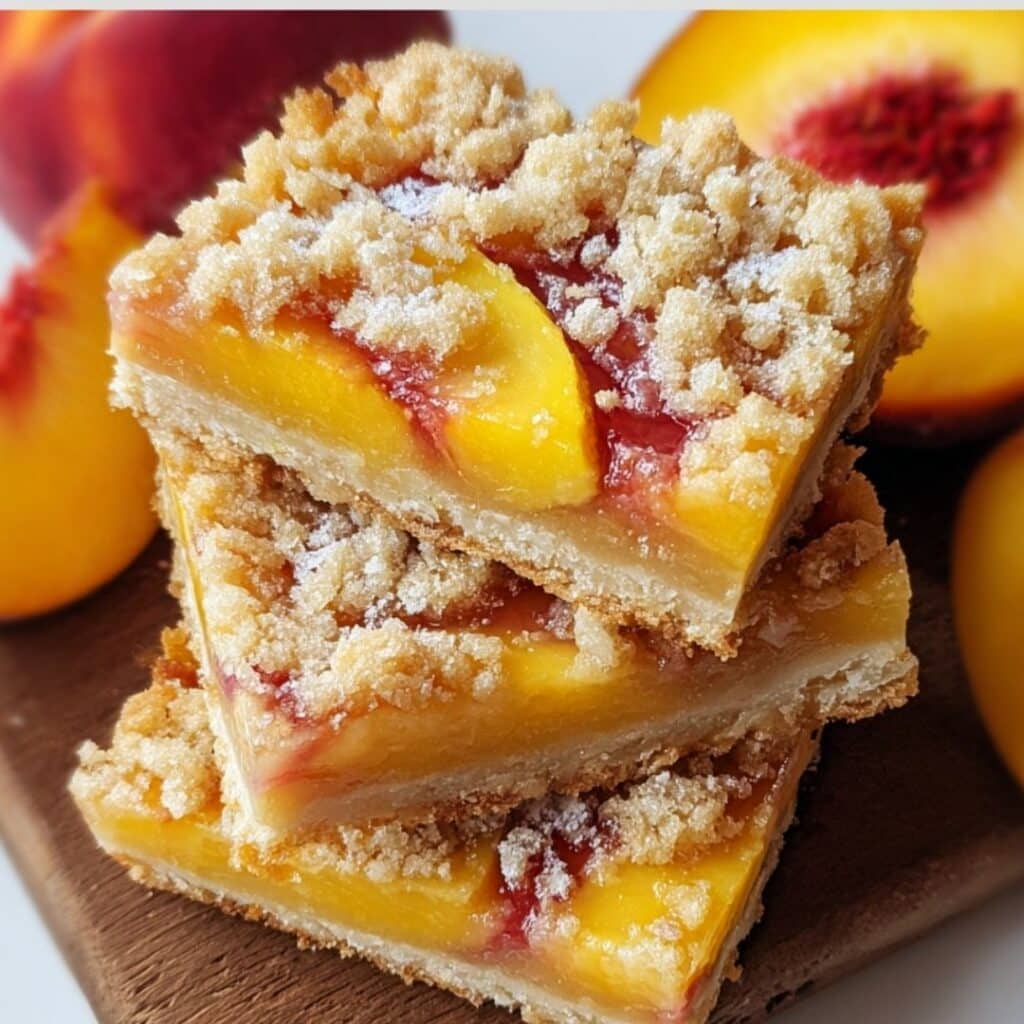 These bars pair beautifully with fruit yogurt or a classic fruit crumb bar—for a varied peachy dessert spread that keeps the summer vibe going.