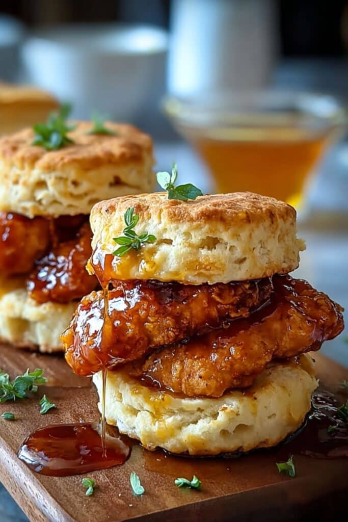 The love for Hot Honey Chicken Biscuits started in the South, where homemade biscuits and fried chicken were staples of Sunday dinners. But somewhere along the way, hot honey entered the picture—and that’s when things really got interesting. The bold addition of spicy sweetness turned a traditional favorite into an unforgettable flavor bomb. It’s not just a sandwich. It’s a full sensory experience. Every time I bite into Hot Honey Chicken Biscuits, I’m reminded of my grandmother’s flaky buttermilk biscuits and my uncle’s backyard fried chicken feasts—except now, they come with a fiery twist.
