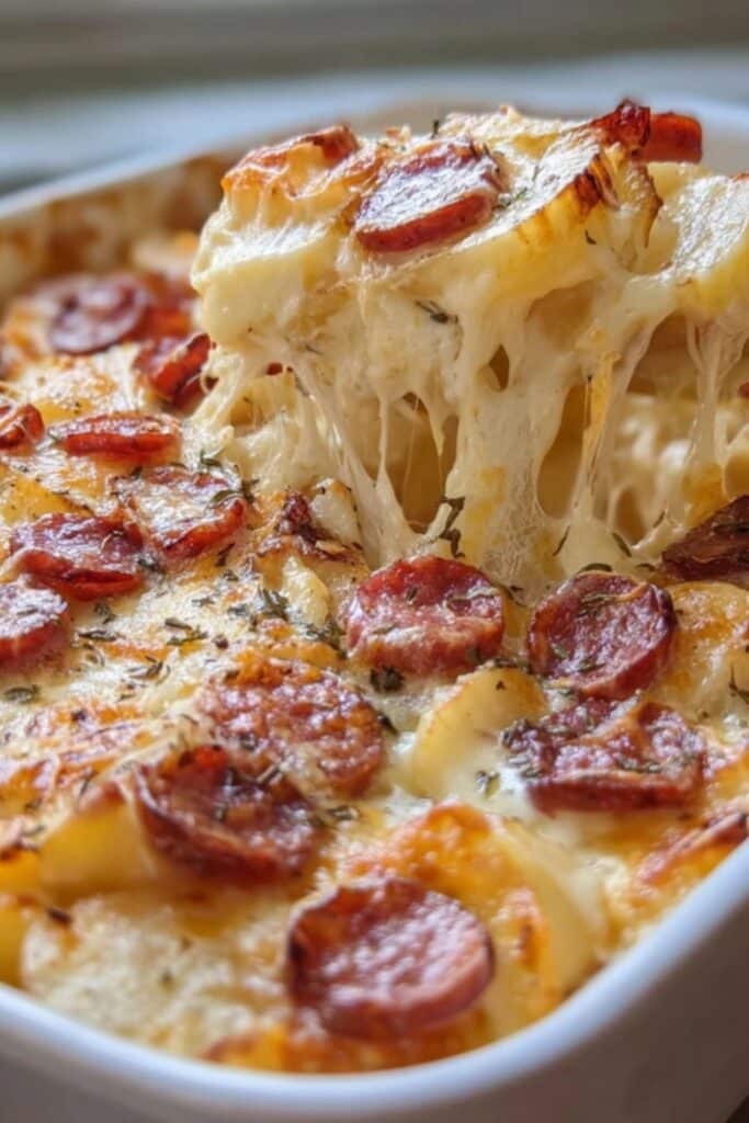 This Kielbasa Sausage Cheesy Potato Casserole is a hearty, creamy, and smoky dish that’s perfect for any meal, combining savory kielbasa with cheesy potatoes baked to golden perfection.