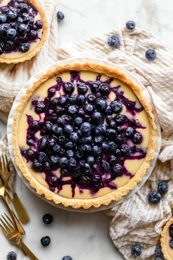 Historically, tarts like this evolved from the French tarte au citron and were adapted in American kitchens by adding locally available fruits like blueberries. The result? A dessert that merges rustic farmhouse simplicity with elegant patisserie technique. Plus, the color contrast—vivid yellow curd against those deep indigo berries—makes this dish as stunning to look at as it is to eat.