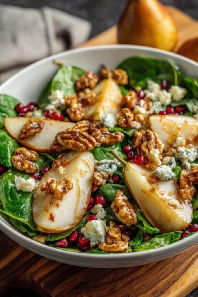| Maple–balsamic dressing | Acid and sweetness that tie everything together without overpowering the pears. |