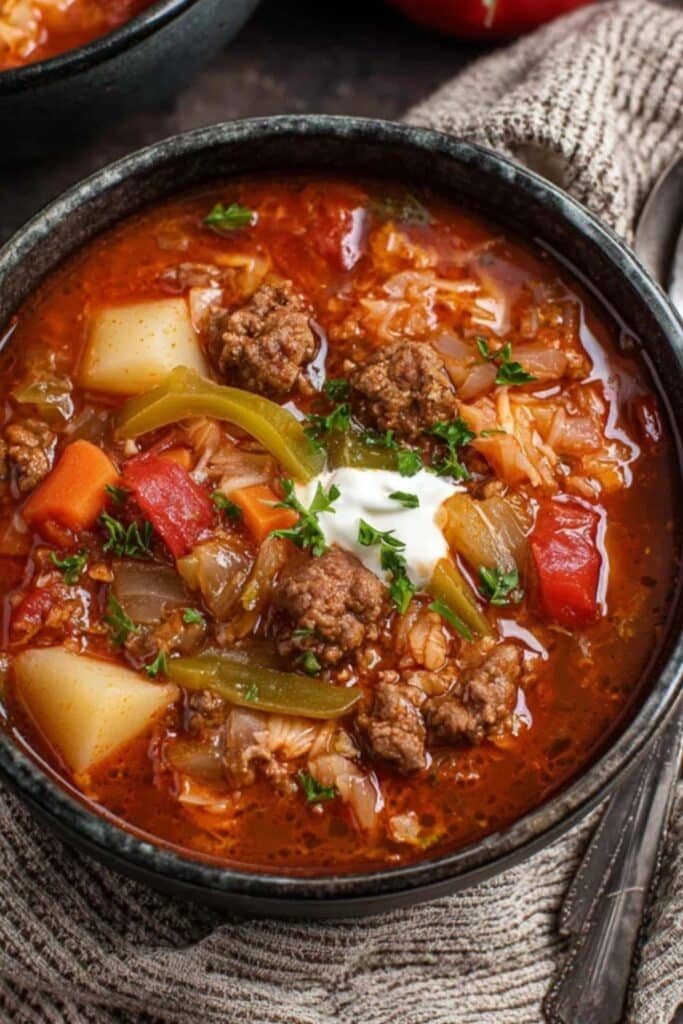 I love bringing this out on the same nights I’d make something like <a href=”https://www.eatingheritage.com/cabbage-and-potato-soup/”>cabbage and potato soup</a>—anything that lets cabbage shine without fuss. The difference is that this bowl tastes exactly like the stuffed cabbage your grandma might have made, just in a spoonable form.